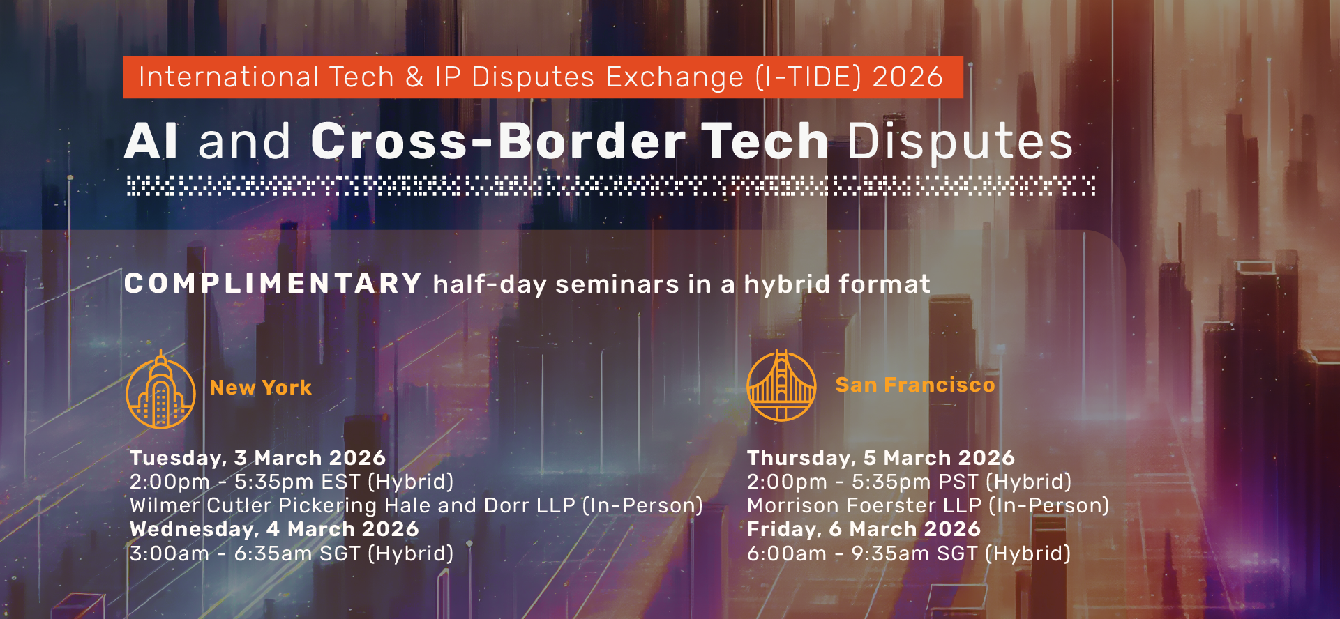 Join us for seminars on AI and Cross-Border Tech Disputes under the International Tech & IP Disputes Exchange (I-TIDE) series. These seminars are jointly presented by the Intellectual Property Office of Singapore, Penn State Dickinson Law and the World Intellectual Property Organization Arbitration and Mediation Center.